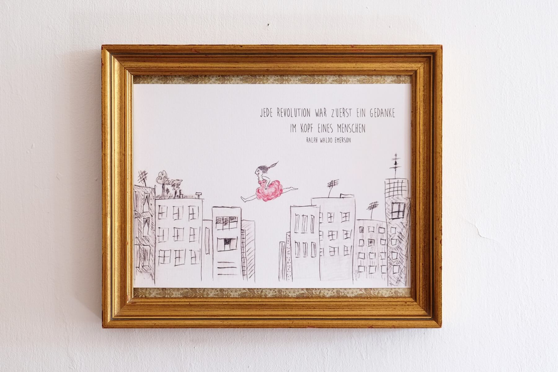 Die Zeichnungen machen sich auch sehr schön an der Wand.