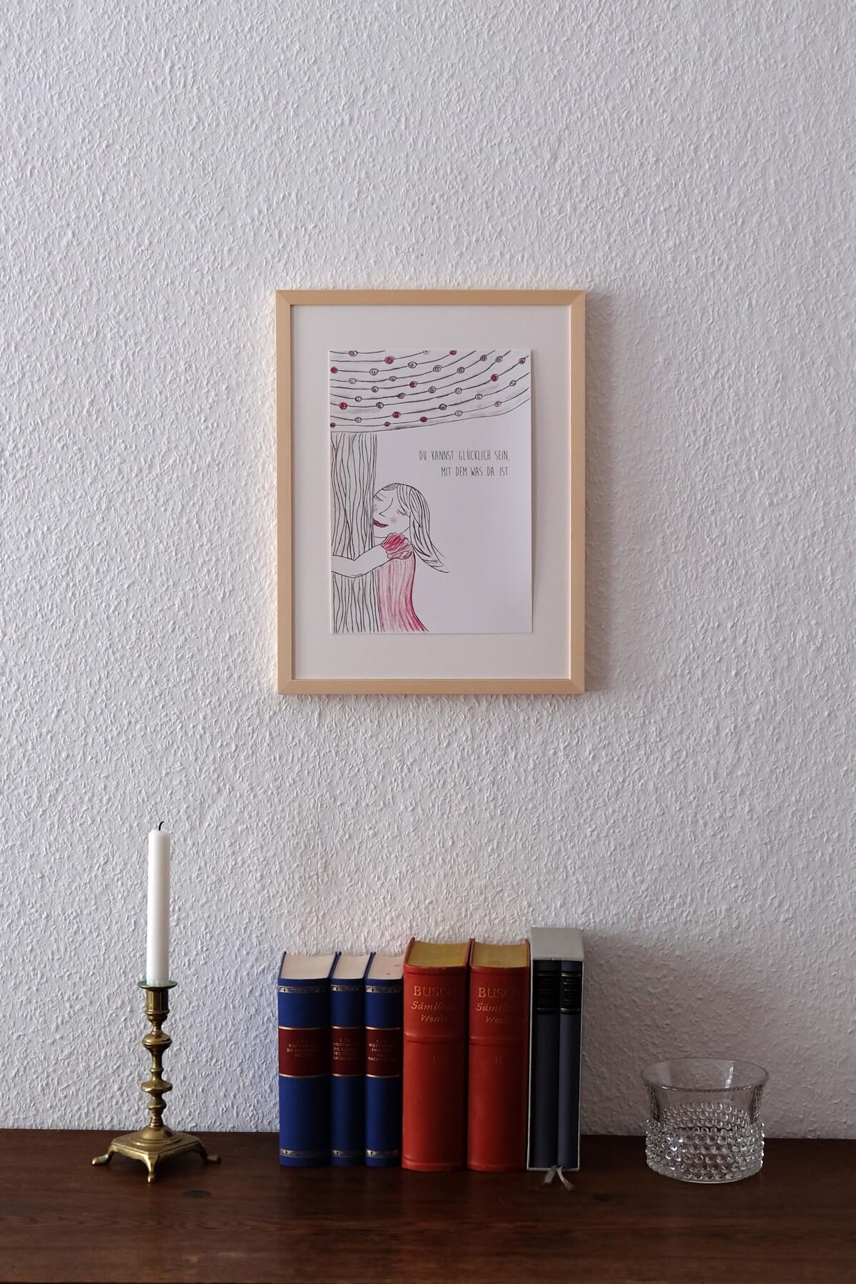 Sei es im Rahmen oder einfach mit Klebestreifen befestigt.